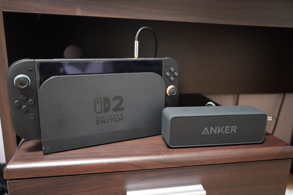 無事に音が出た!「これでやっと快適にゲームができる!」今では、このAnkerのスピーカーはモニターでNintendo Switch2をプレイする時に有線接続で利用しており、最高の相棒になっている。安価なのに十分な音質で、大満足だ。